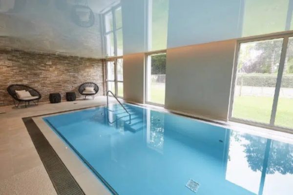 Les 28 maisons du domaine, dont la maison témoin, sont équipées de stores enrouleurs sobres et élégants et la piscine intérieure dispose d’un store Screen blanc électrique de 4,80 mètres de longueur. L’ensemble a été installé sur site par notre équipe de poseurs chevronnés Subdéco.